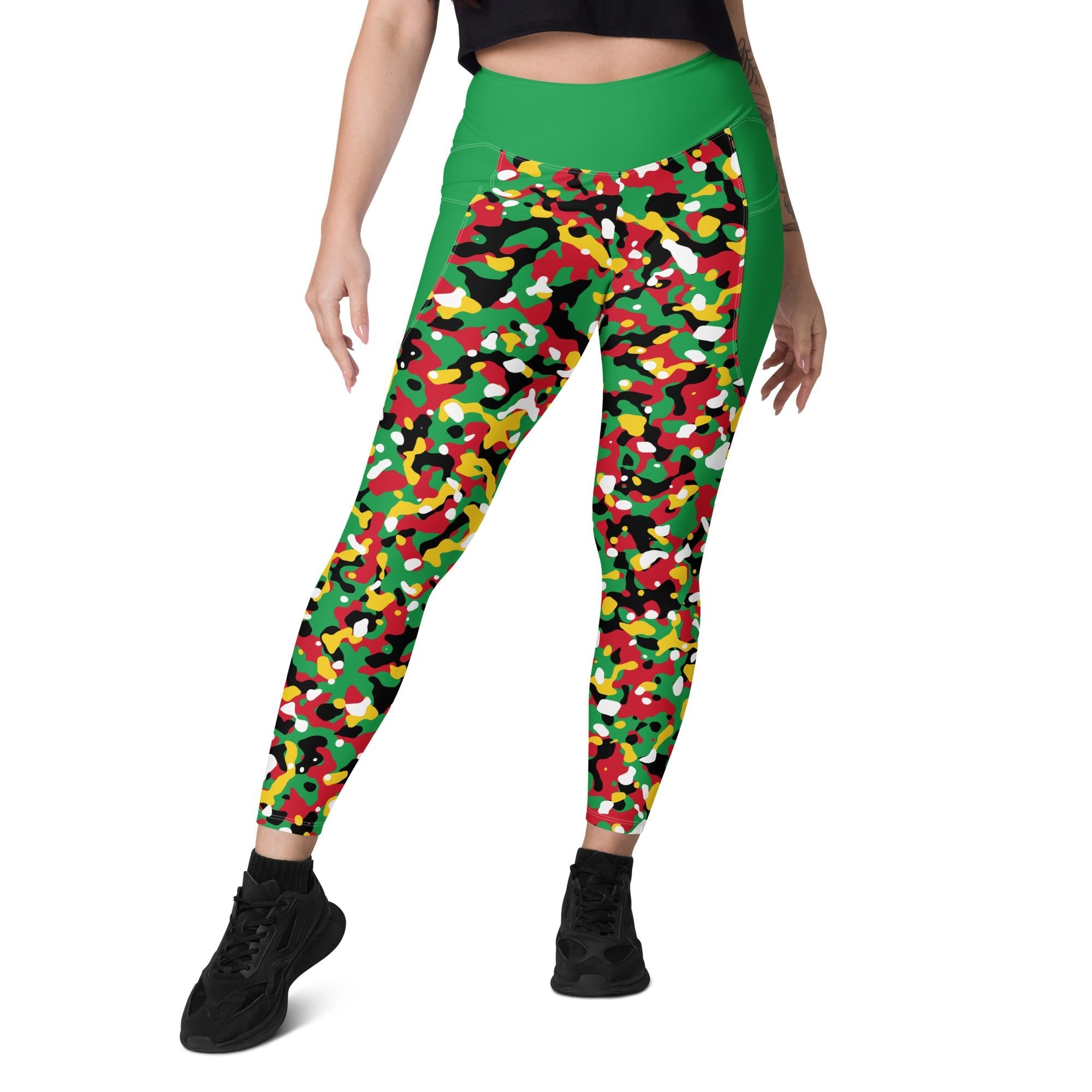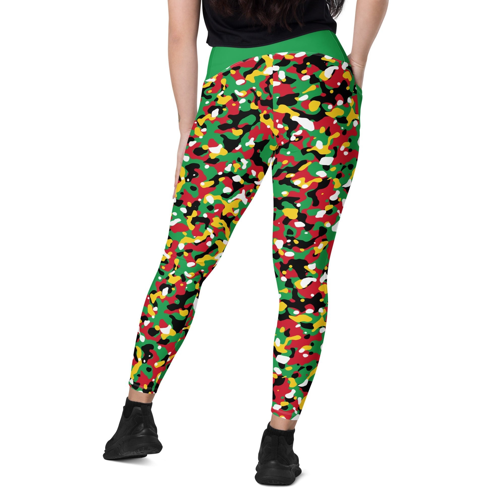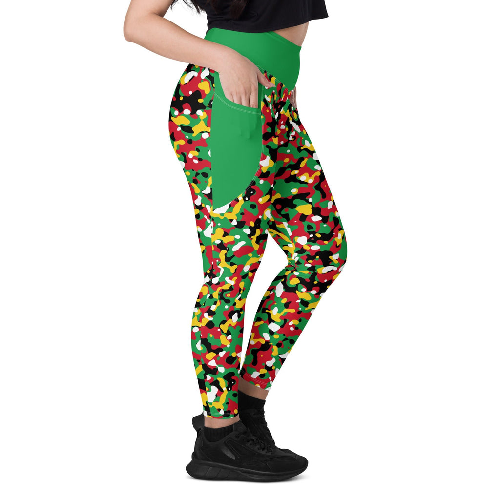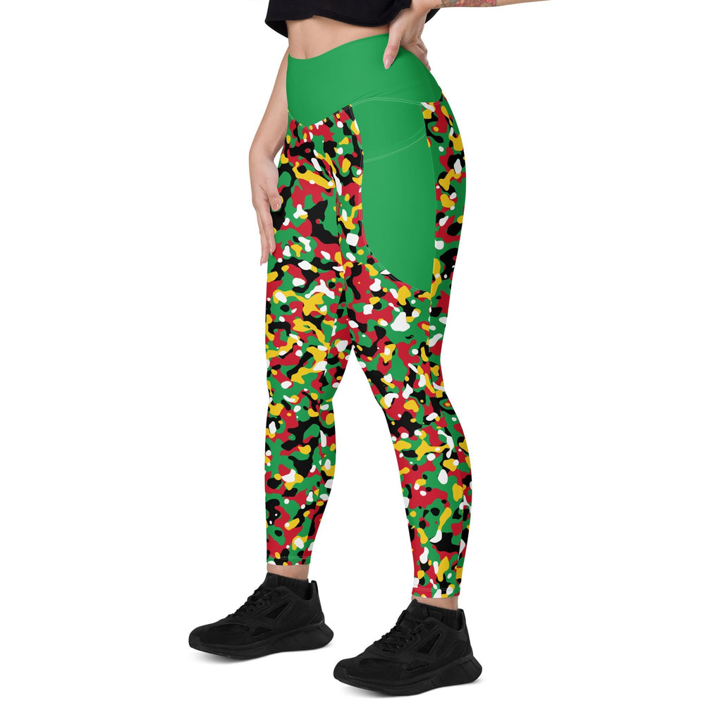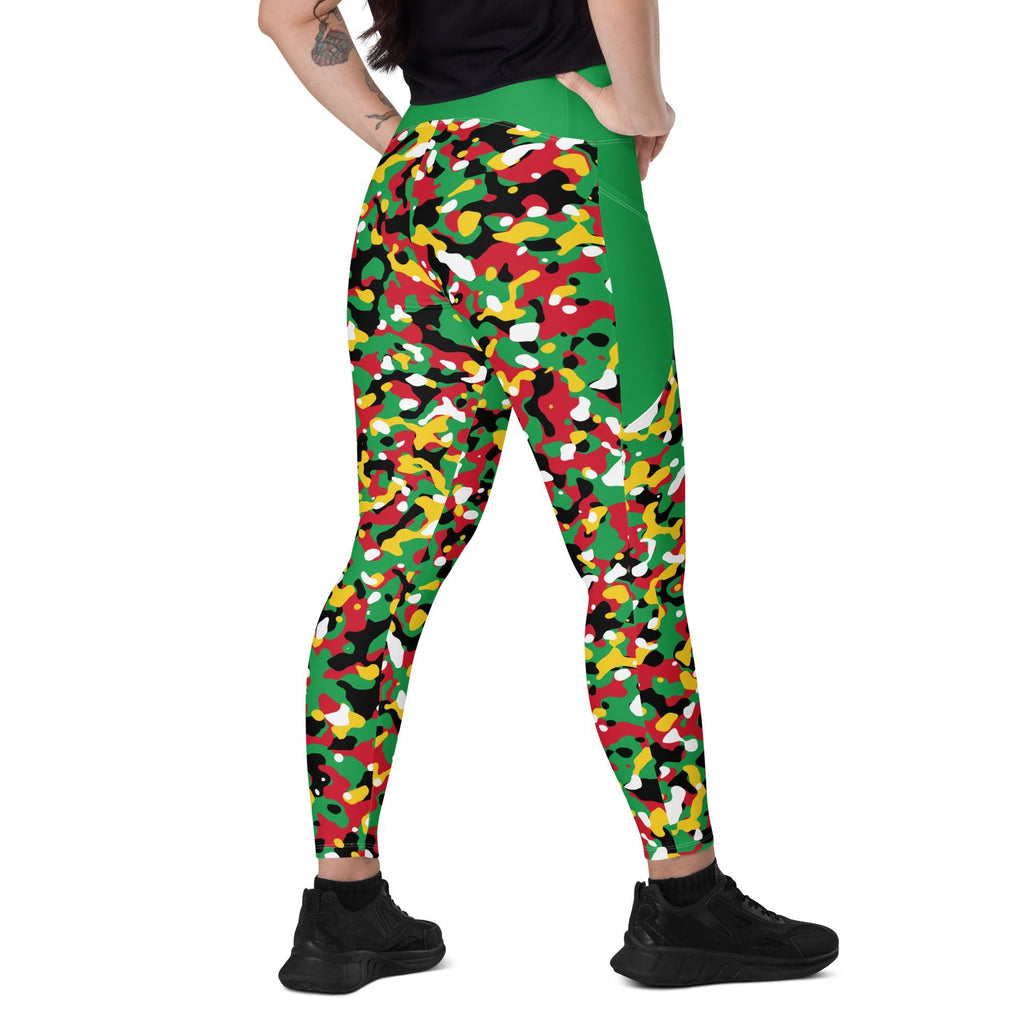 St Kitts & Nevis Flag Camo (Green) Leggings with pockets