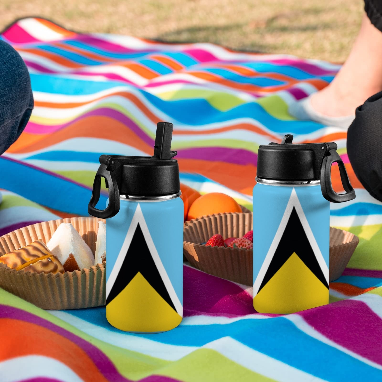 St Lucia Flag Kids Water Bottle with Straw Lid (12 oz)