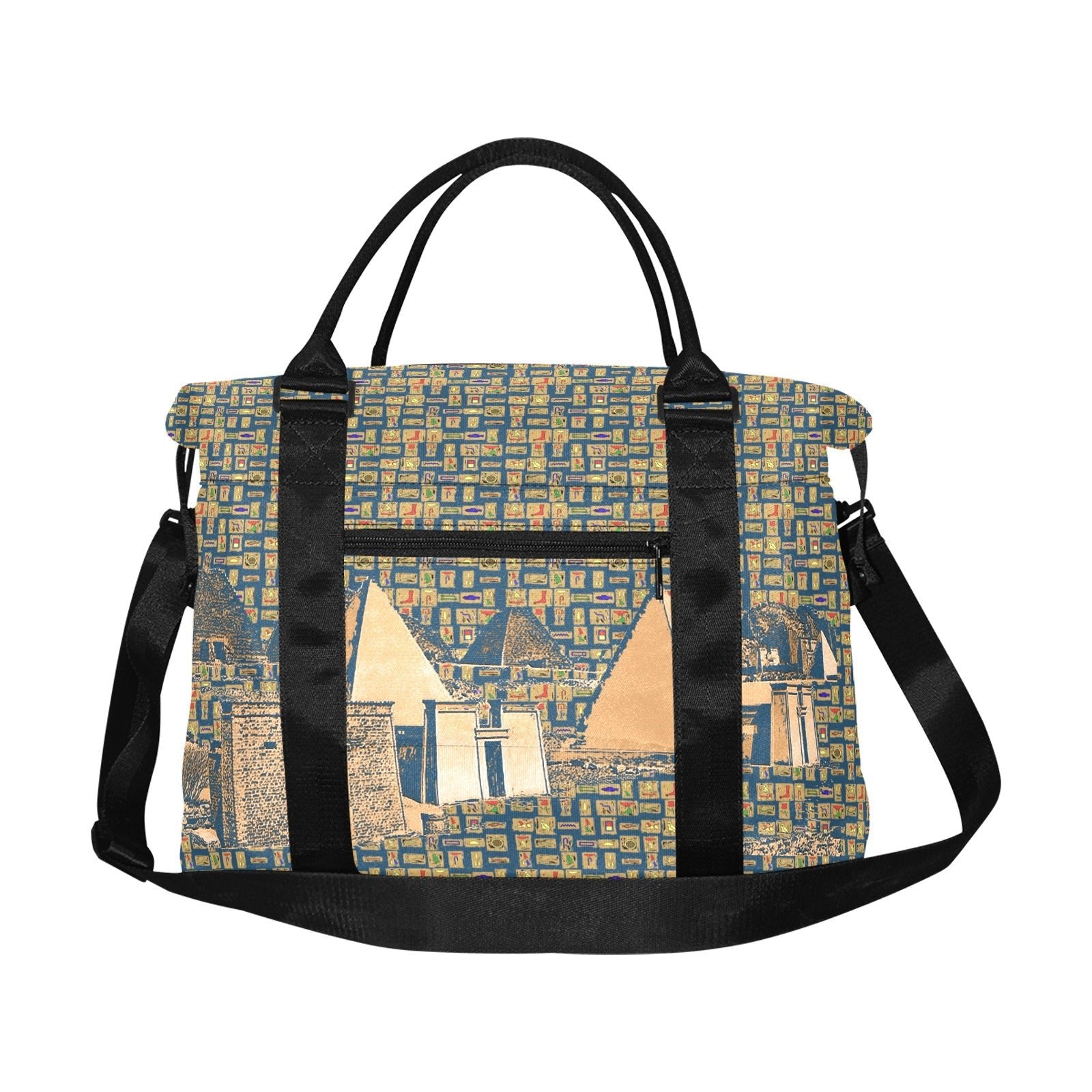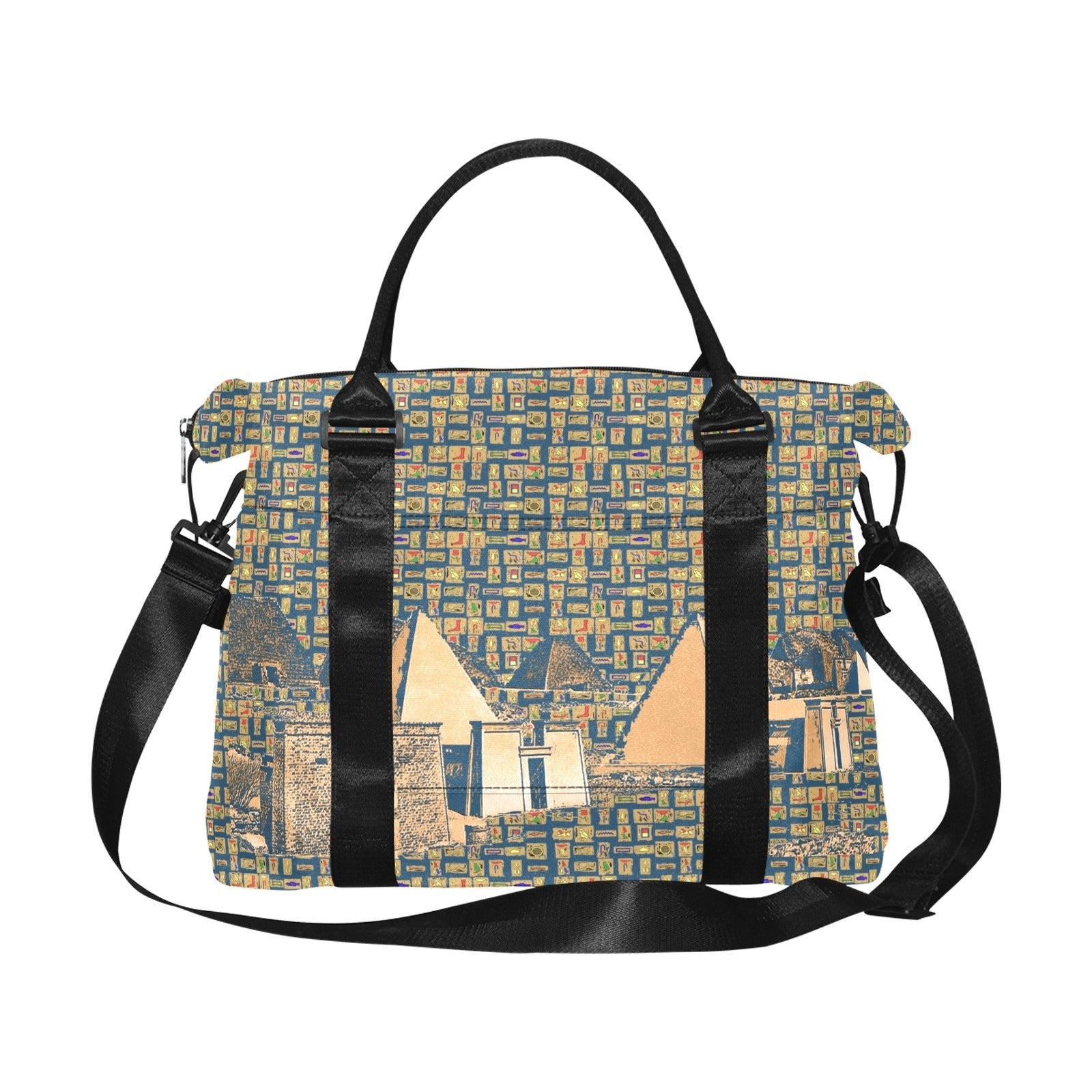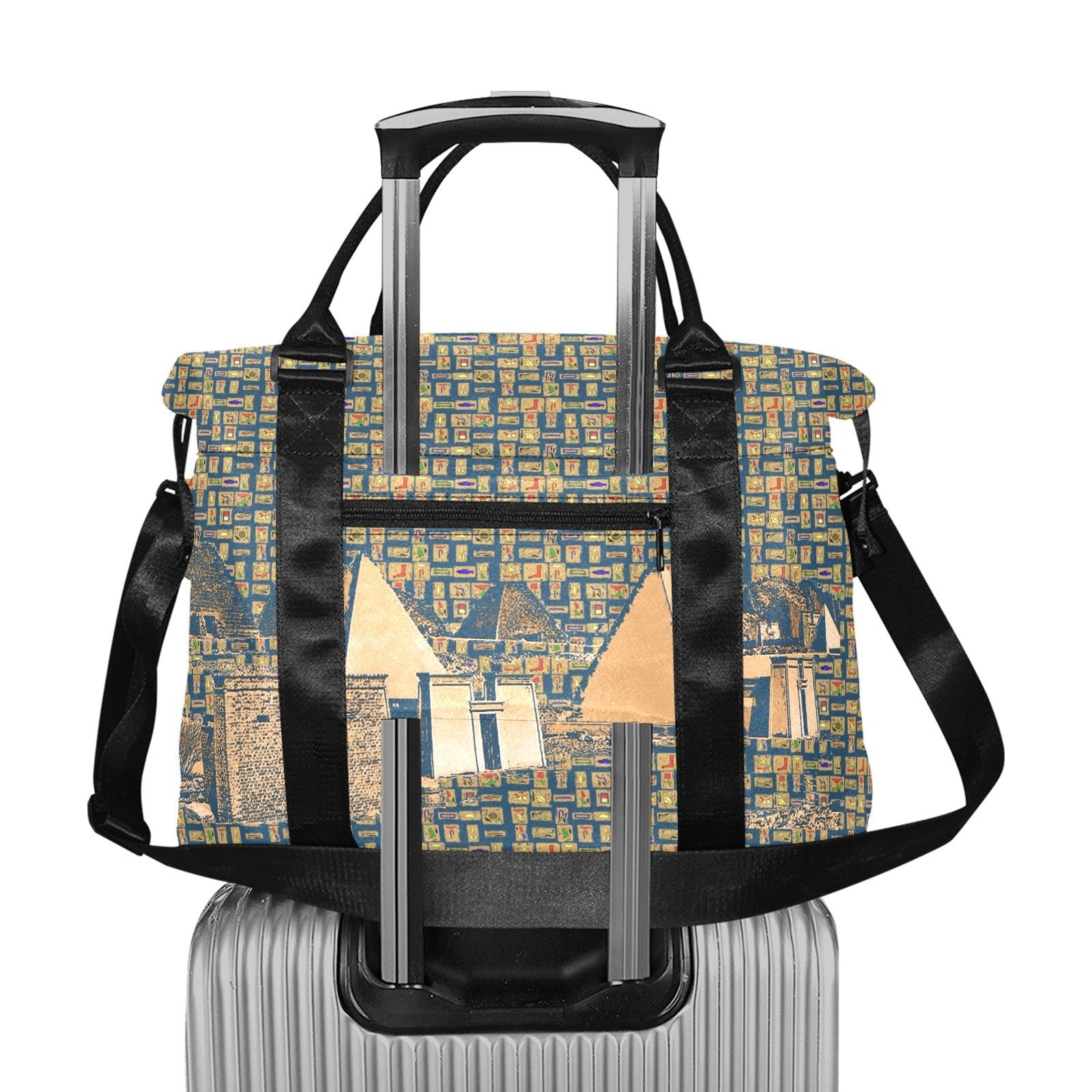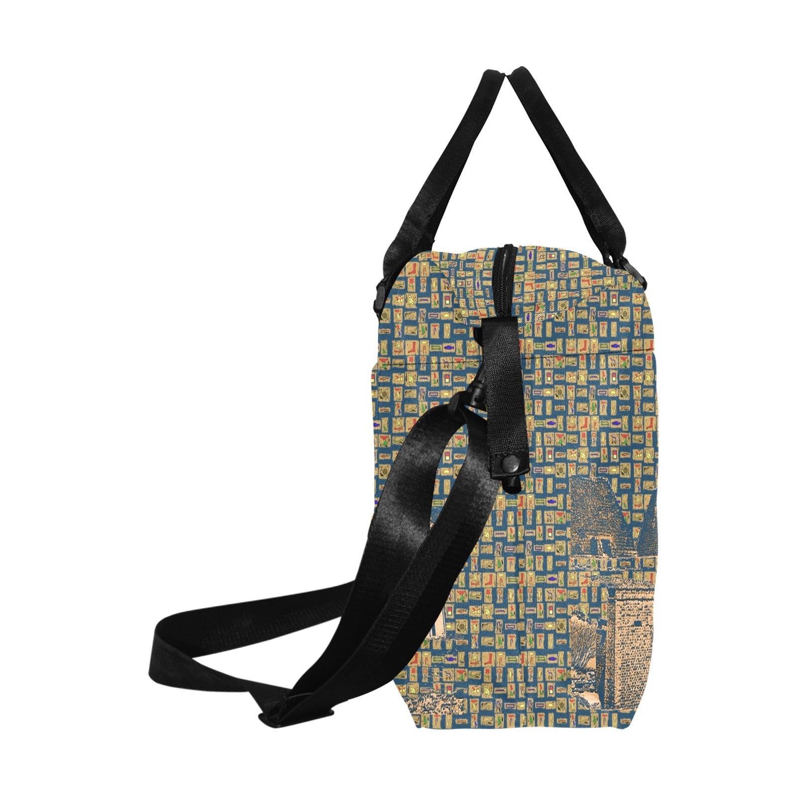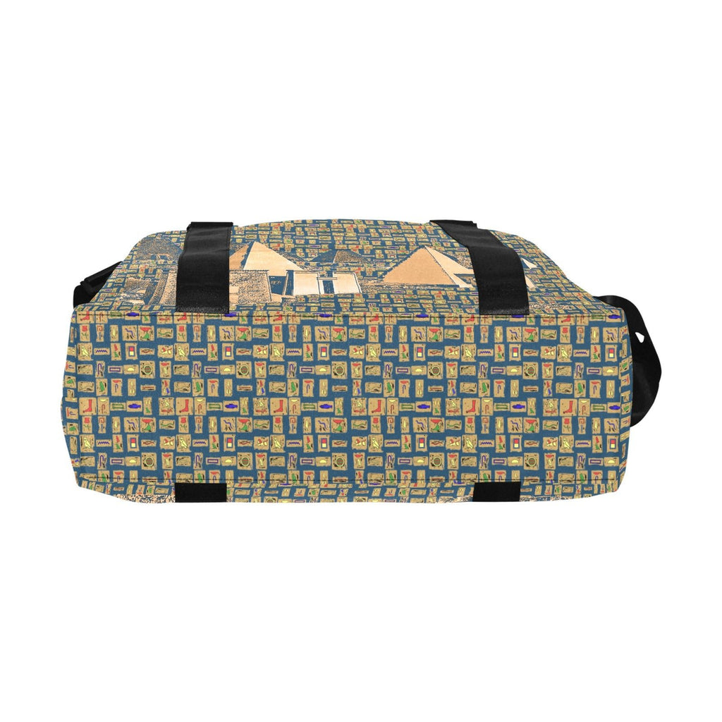 Made for utility and style. This large duffle bag features Ancient Nubia Pyramids on Egyptian Hieroglyphics pattern, practical construction and sturdy thickened strap for comfortable carrying and great convenience.