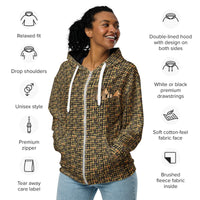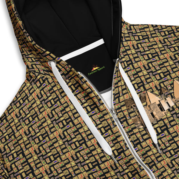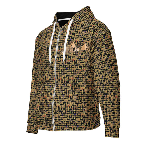 Casual Zip Hoodie with Ancient Nubia Pyramids on Hieroglyphics pattern